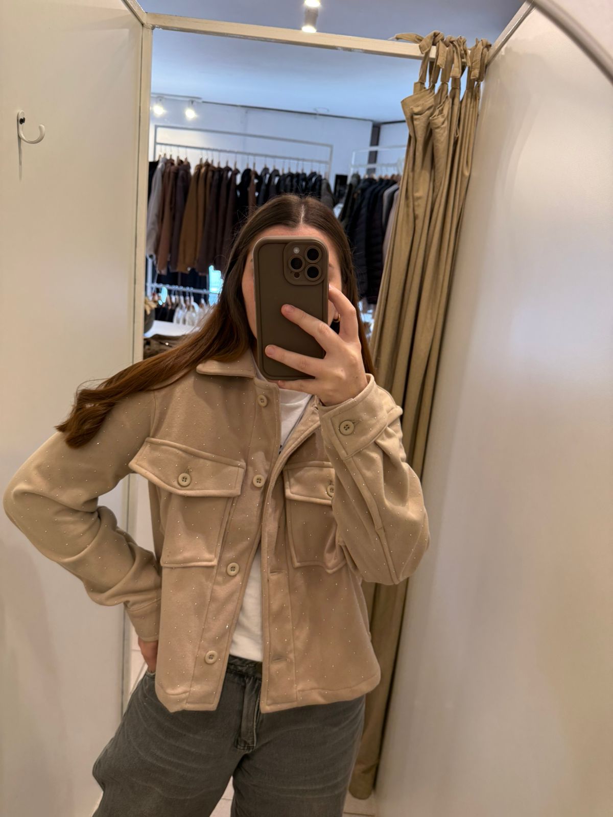 camisaco con brillo beige