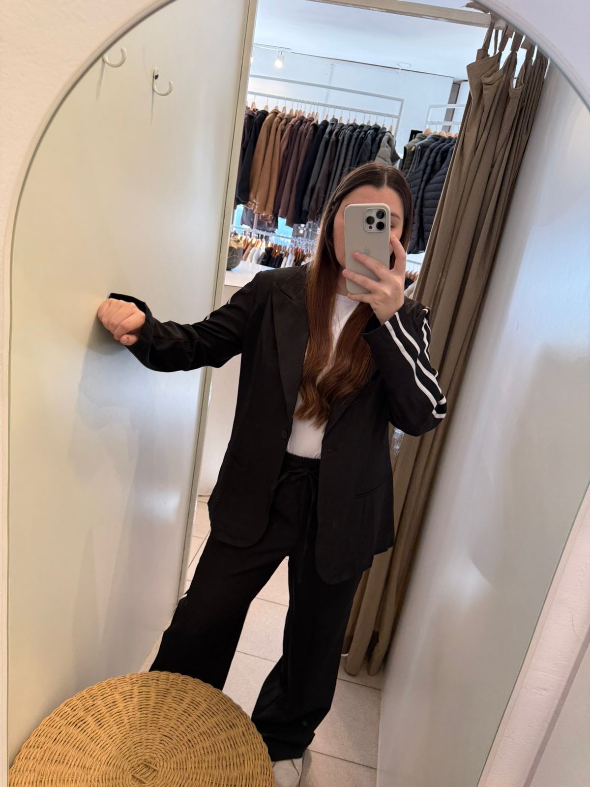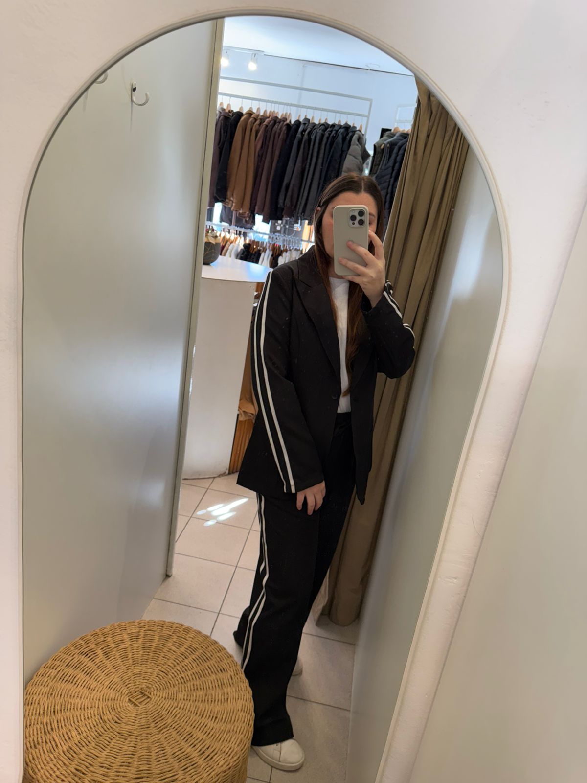 Conjunto blazer con pantalon rayado negro