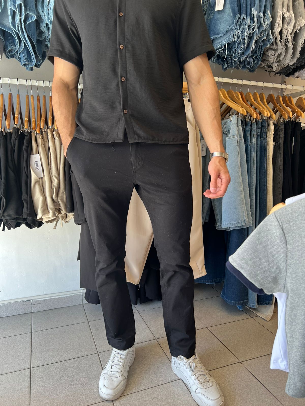 Pantalon corte chino negro