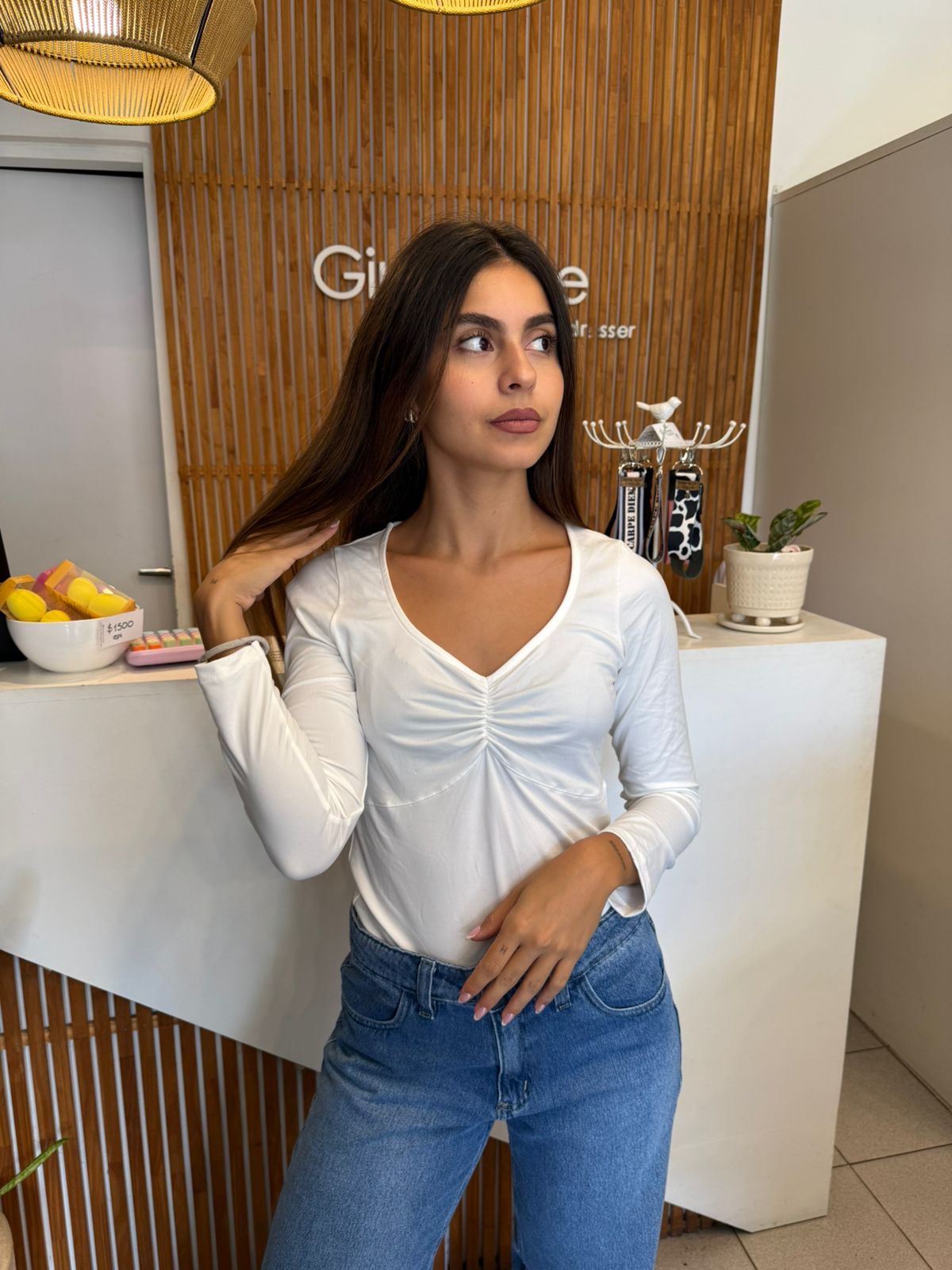 Remera con frunce blanca